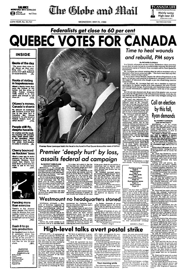 Quebec Referendum Results - One Referendum Three Decades Of Misrepresentation The Globe And Mail